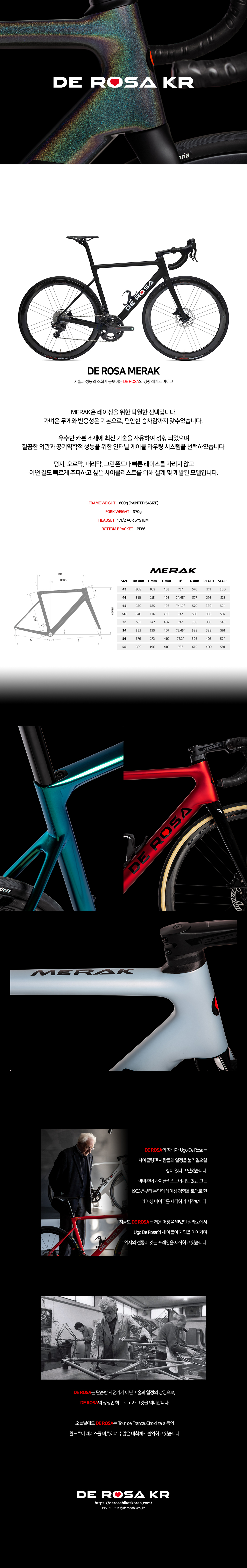 기술과 성능의 조화가 돋보이는 데로사의 경량 레이스 바이크. 판매 가격은 프레임셋(프레임, 포크, 싯포스트) 기준이며 재고 및 완성차 구입은 별도 문의 부탁 드립니다.