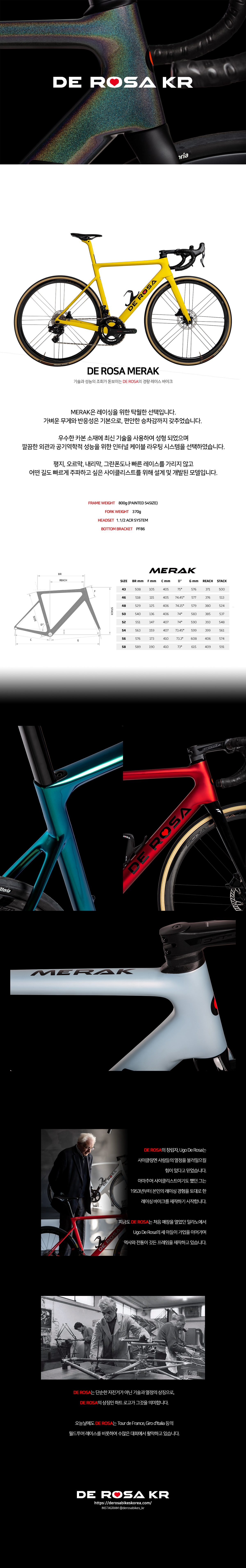 기술과 성능의 조화가 돋보이는 데로사의 경량 레이스 바이크. 판매 가격은 프레임셋(프레임, 포크, 싯포스트) 기준이며 재고 및 완성차 구입은 별도 문의 부탁 드립니다.